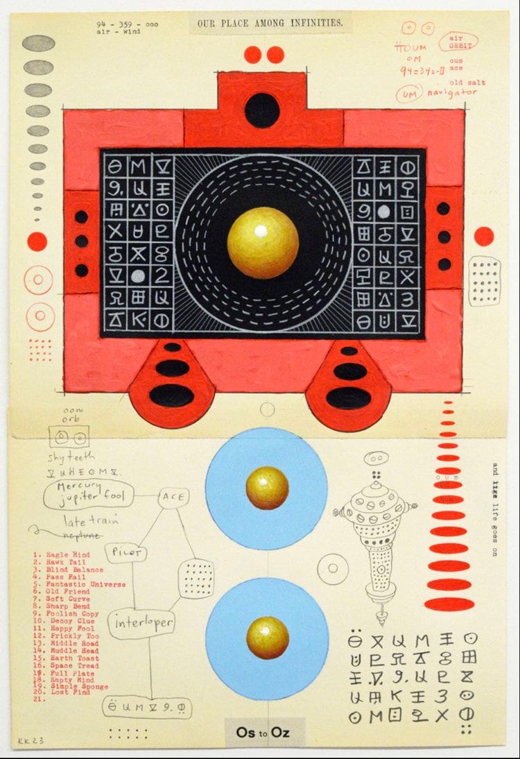 The work of Karla Knight might be my favorite example of this kind of diagram. Meaning is both precise (Mercury jupiter fool — ACE) and elusive (what?). It disrupts and complicates while illuminating and complementing. It invites the viewer to expand their vision, to consider knowledge as a dynamic, malleable process, to see multidirectional complexity.