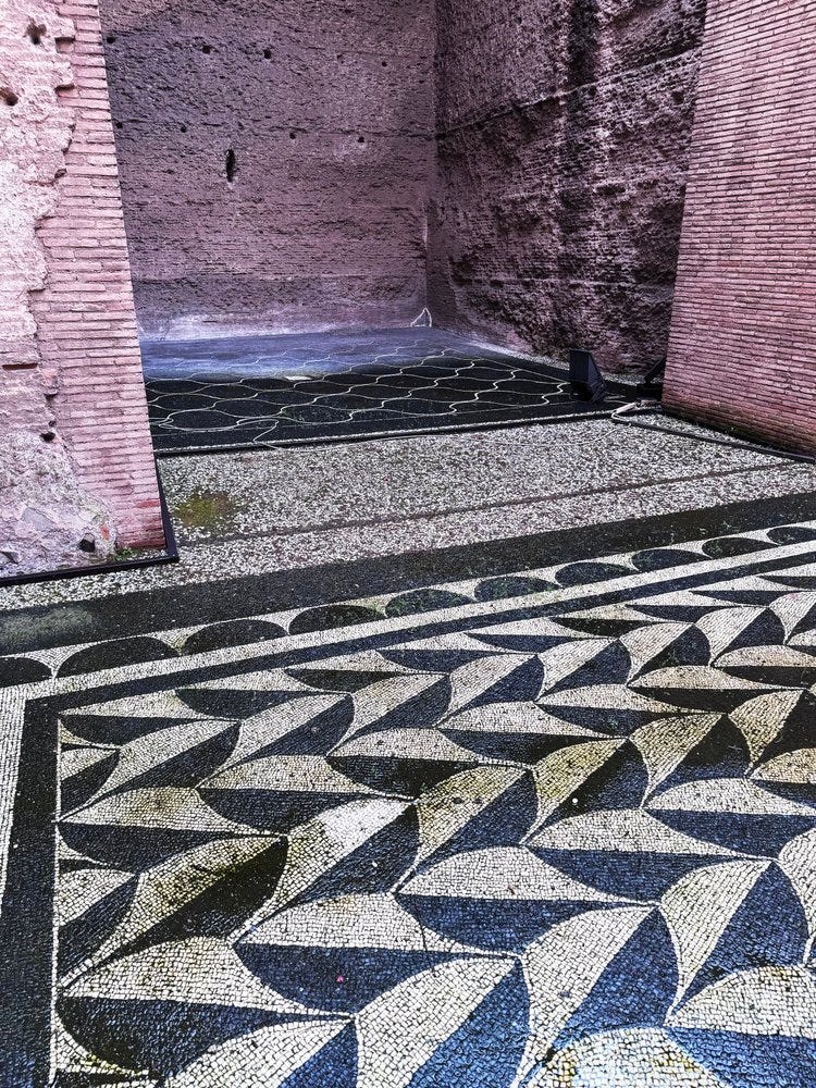 These baths were once the second largest public baths in the city, and date from 200AD. A long time ago, right? And yet, when we rounded a corner within the ruins, both of us gasped with recognition at the original mosaic tile floors. They looked like they’d been designed yesterday — not nearly 2,000 years ago.